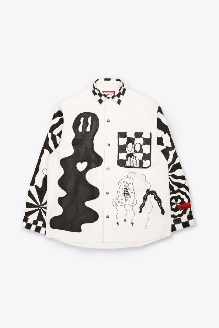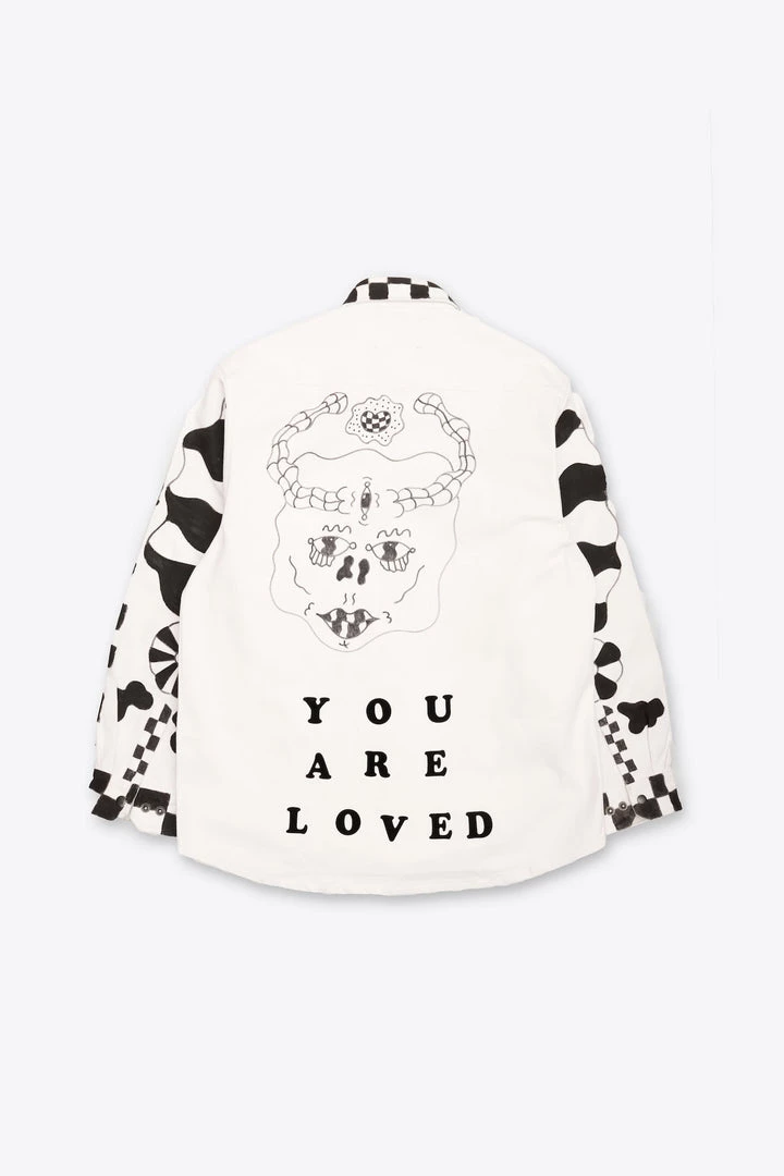 Hand painted by artist Avalene Musik on a 100% GOTS Certified Heavyweight Oversized Canvas Jacket.Â
