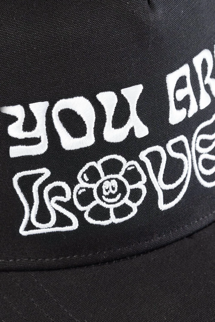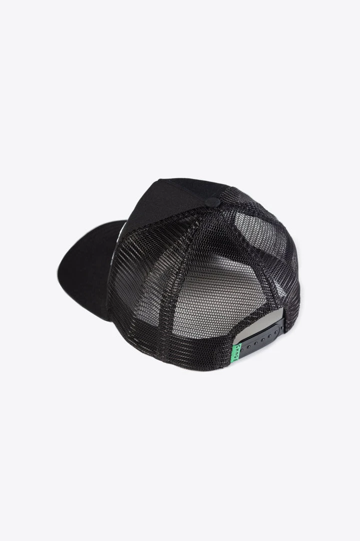 This hat features a classic mid-crown fit, with an organic cotton front panel, a recycled polyester mesh back and an adjustable recycled plastic snap back closure.