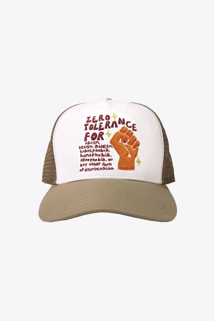 This hat features a classic mid-crown fit, with an organic cotton front panel, a recycled polyester mesh back and an adjustable recycled plastic snap back closure.
