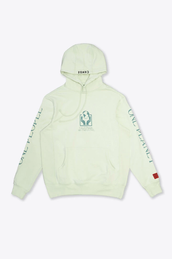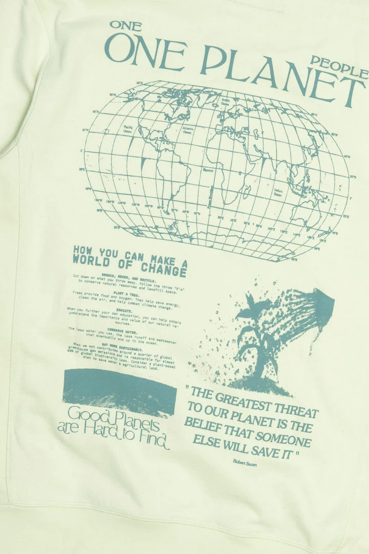 Made from 100% recycled materials, the fabric of this hoodie is derived from 17.2 plastic bottles and over 0.85 LB of recycled cotton fabric scraps.