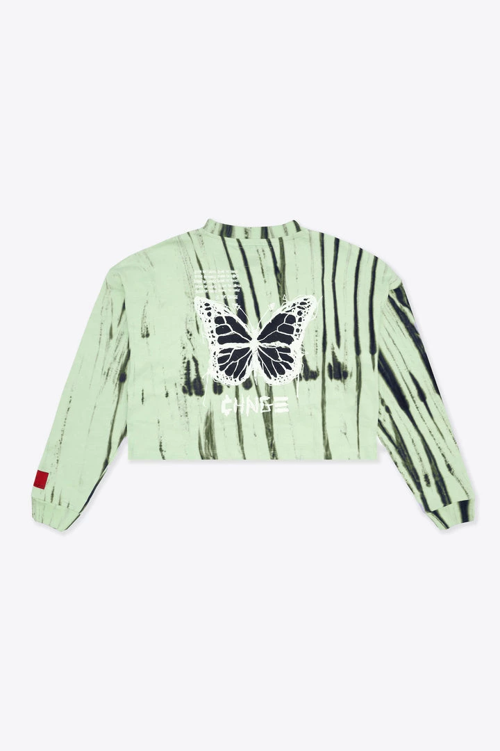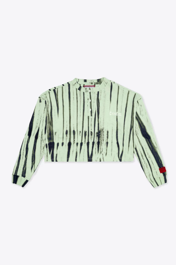 Sree Santhosh Best Selling Tie Dye Butterfly L/S Cuffed Henley Crop (Citron)