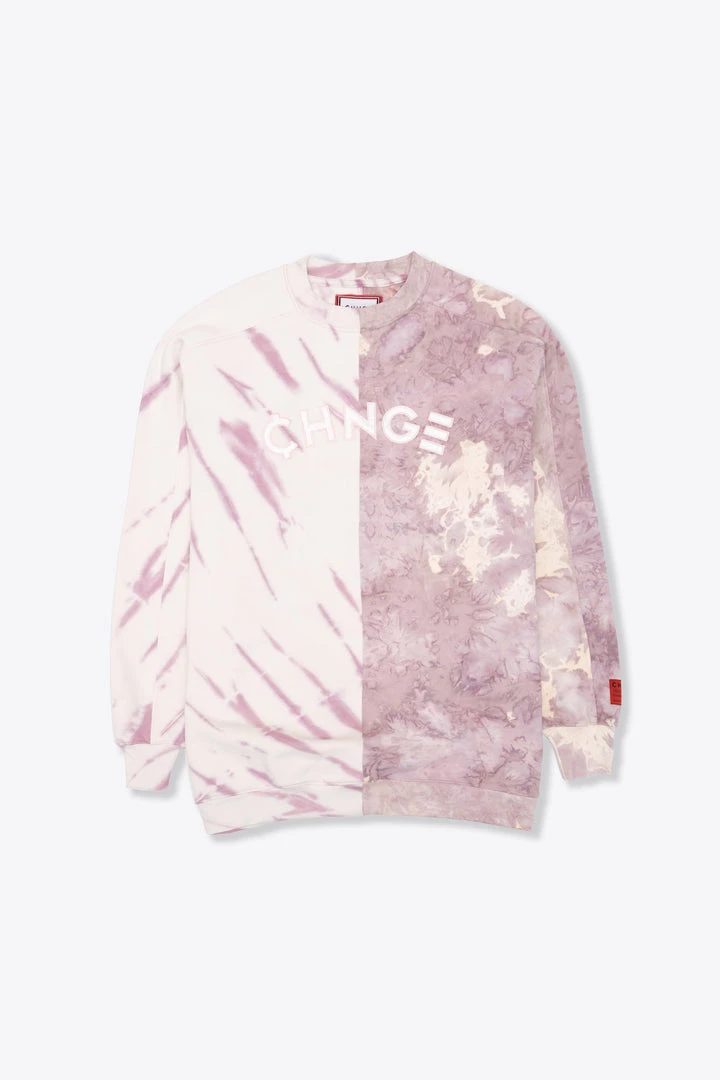 Sree Santhosh Chalk/Mauve Pieced CHNGE Logo Tie Dye Crewneck