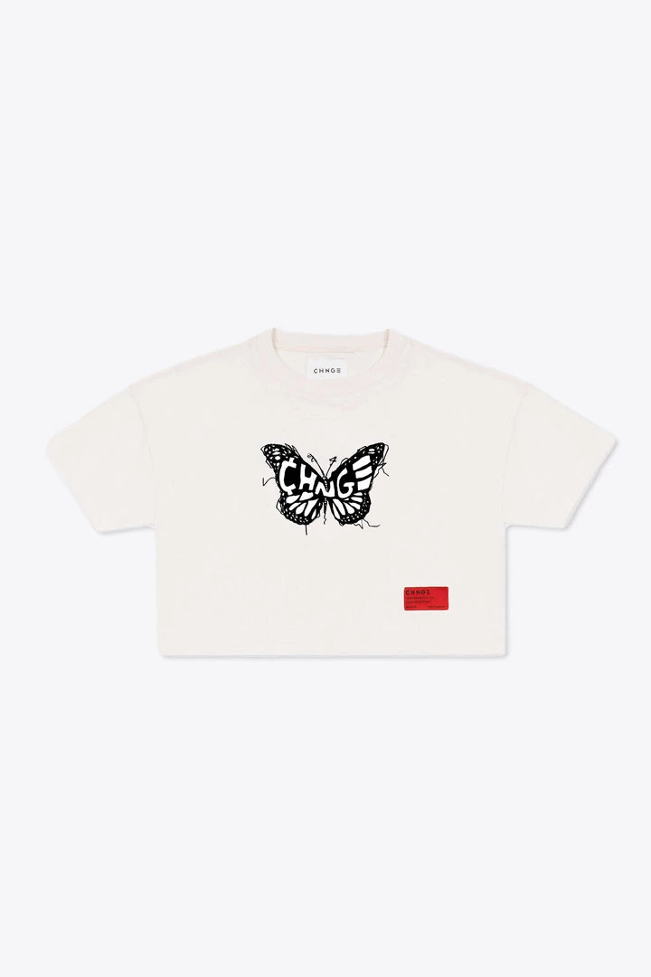 Sree Santhosh CHNGE Logo Butterfly Crop Top (Chalk) Best Selling