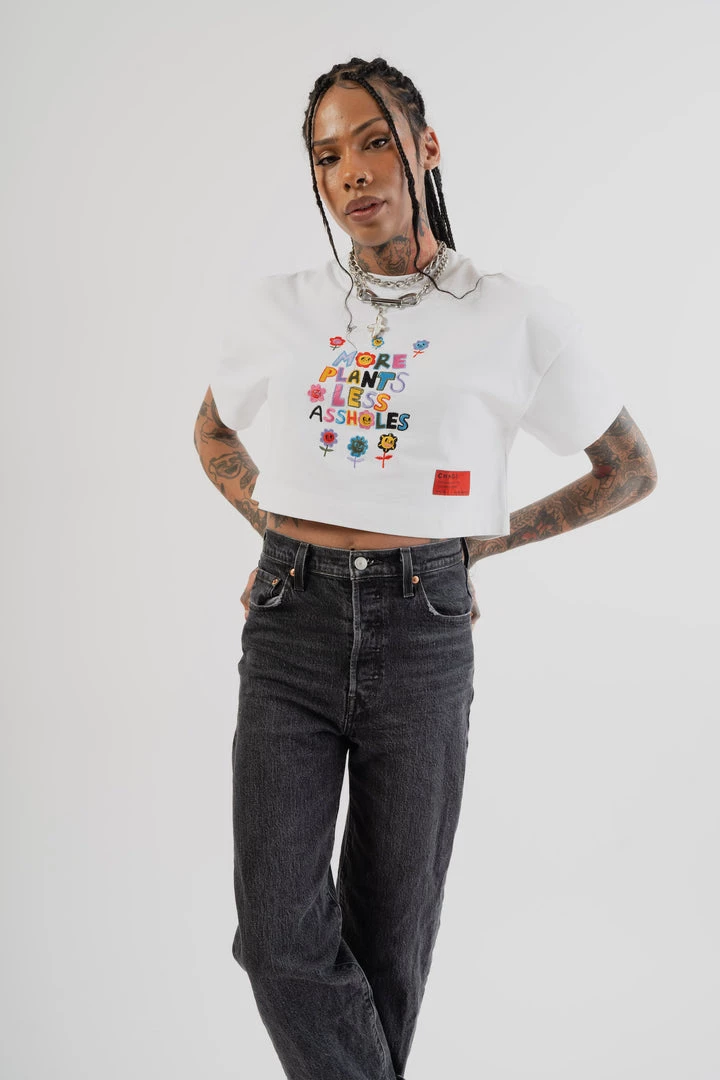 This crop top features a boxed fit and is made from the worldâs finest 100%, GOTS certified, organic cotton. We constructed this garment using a luxurious 7.5 oz jersey fabric, making it both incredibly soft and durable.