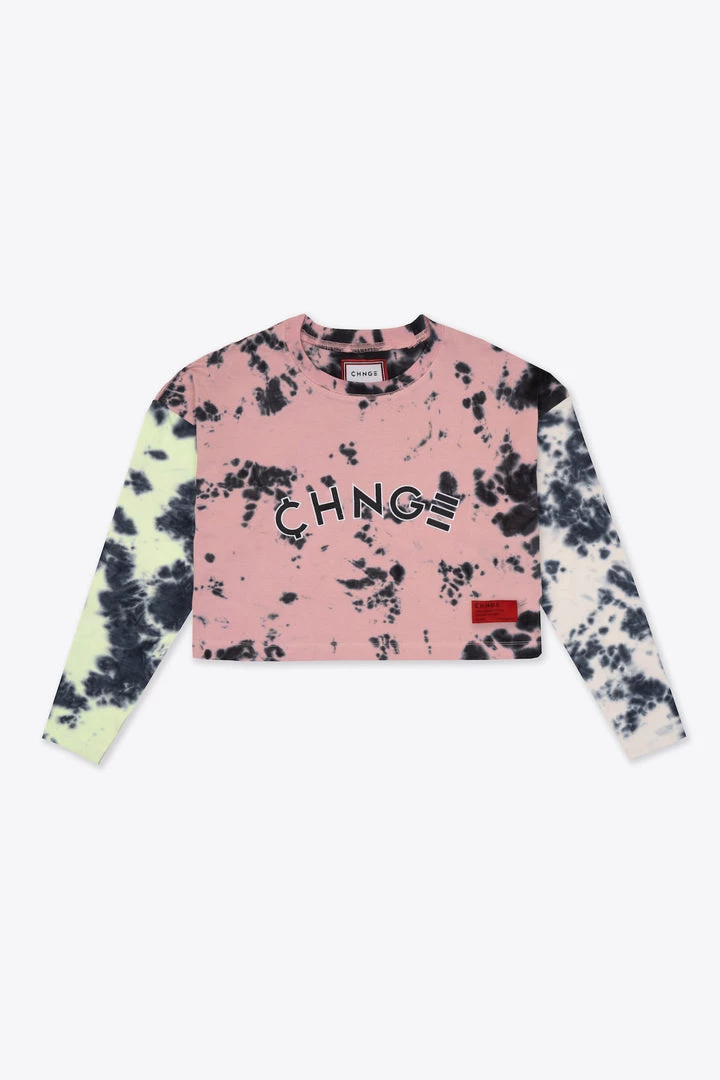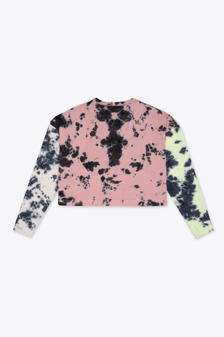 Sree Santhosh Pieced Tie Dye University L/S Crop (Citron/Mauve/Chalk) Best Selling