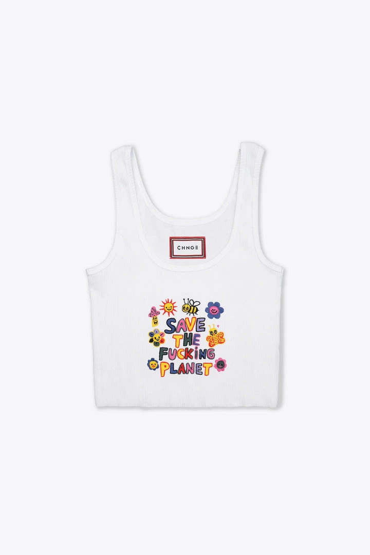 Sree Santhosh Save The Planet Zero Waste Ribbed Tank (White) ♻️