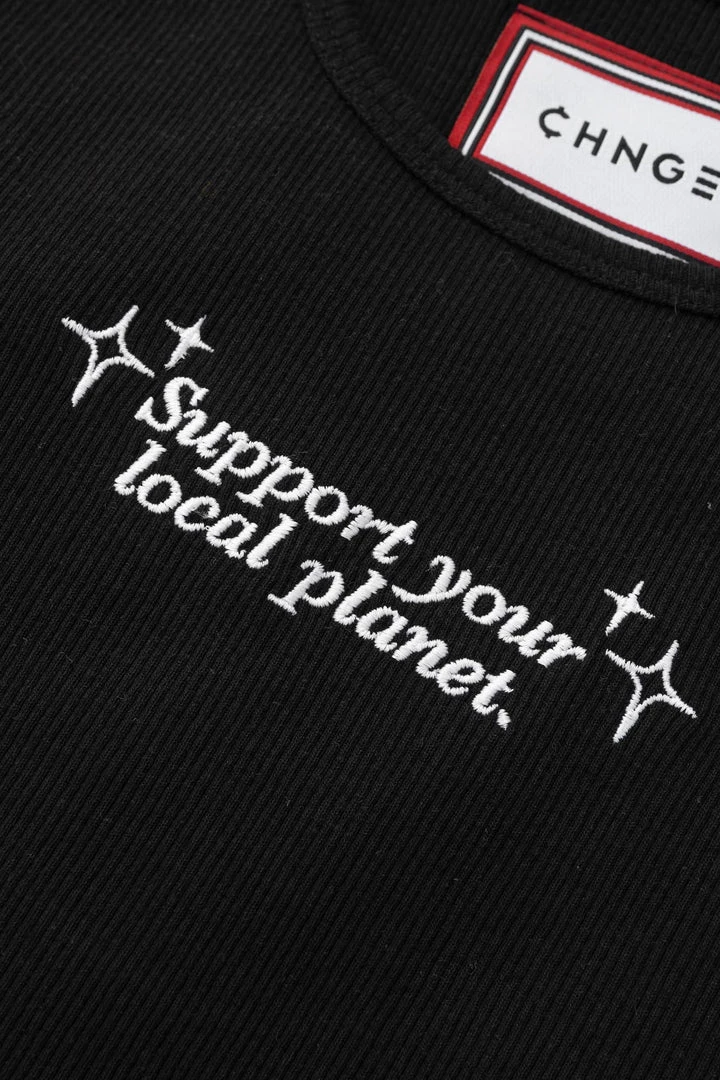 Made from 100% recycled materials, the fabric of this tank is derived from 3.54 plastic bottles and over 0.18LB of recycled cotton fabric scraps.