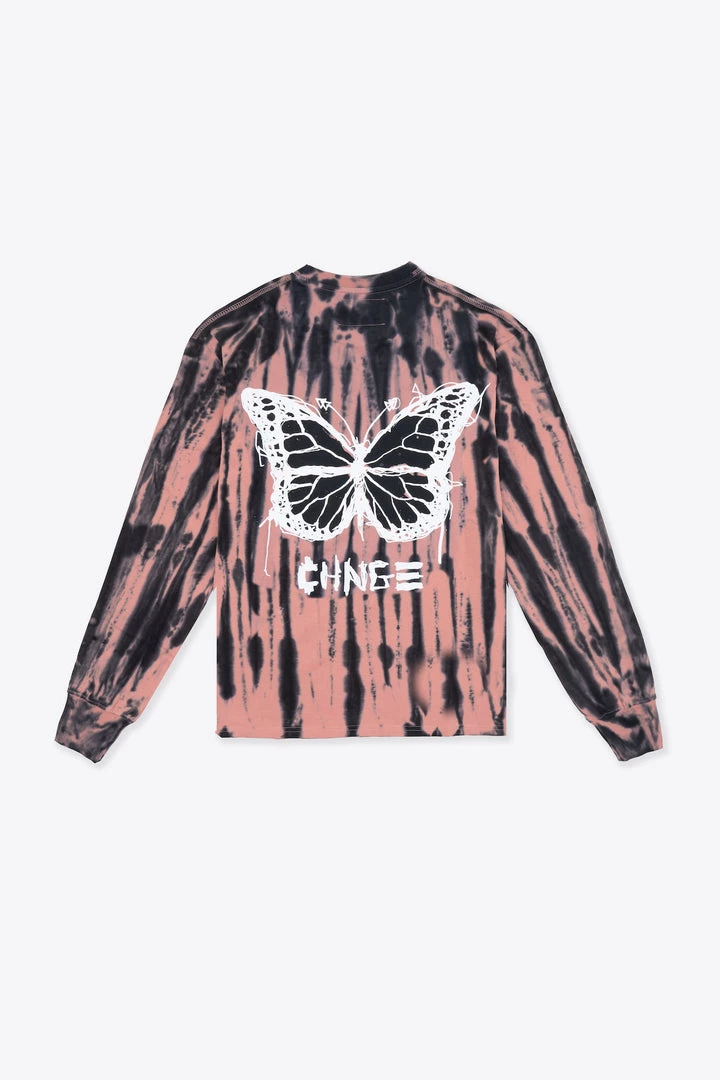 Sree Santhosh Tie Dye Butterfly Cuffed L/S T-Shirt (Dusty Rose/Black) Best Selling