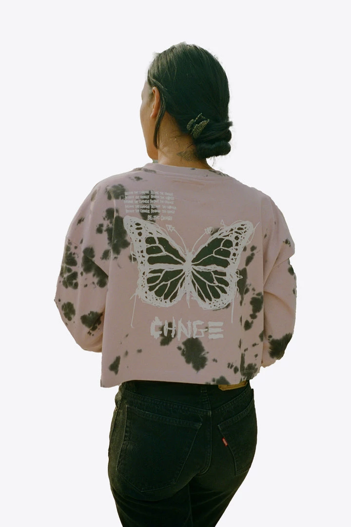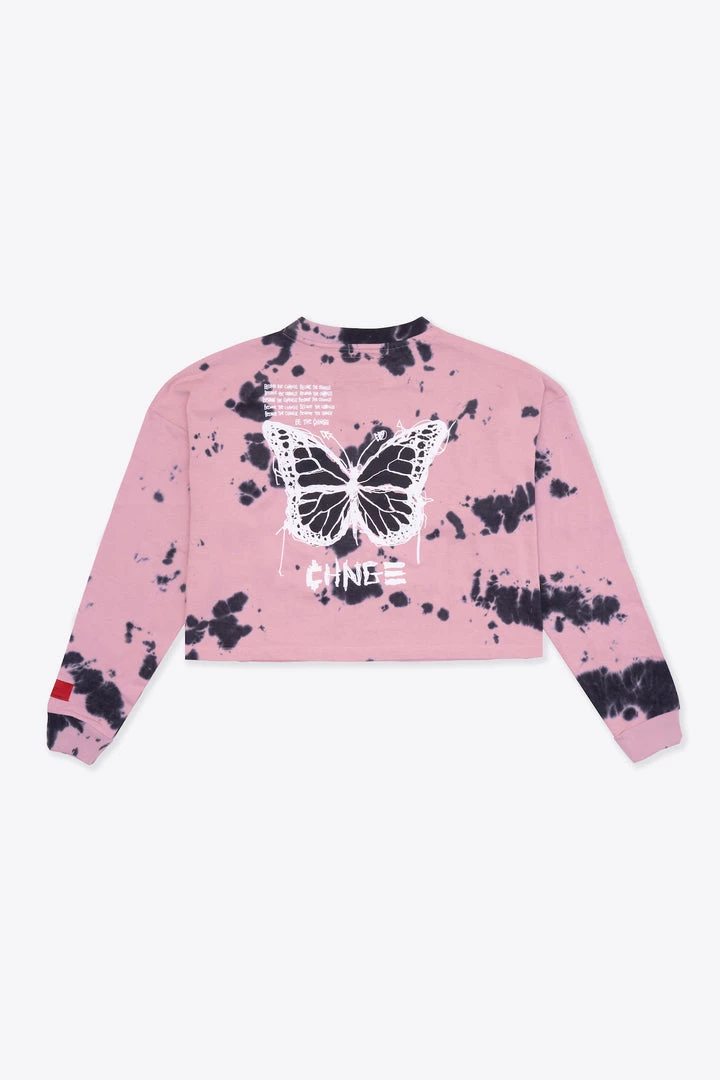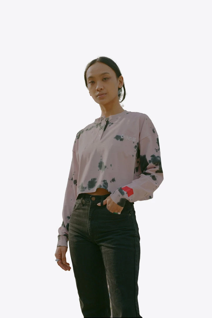 Sree Santhosh Tie Dye Butterfly L/S Cuffed Henley Crop (Mauve) Best Selling
