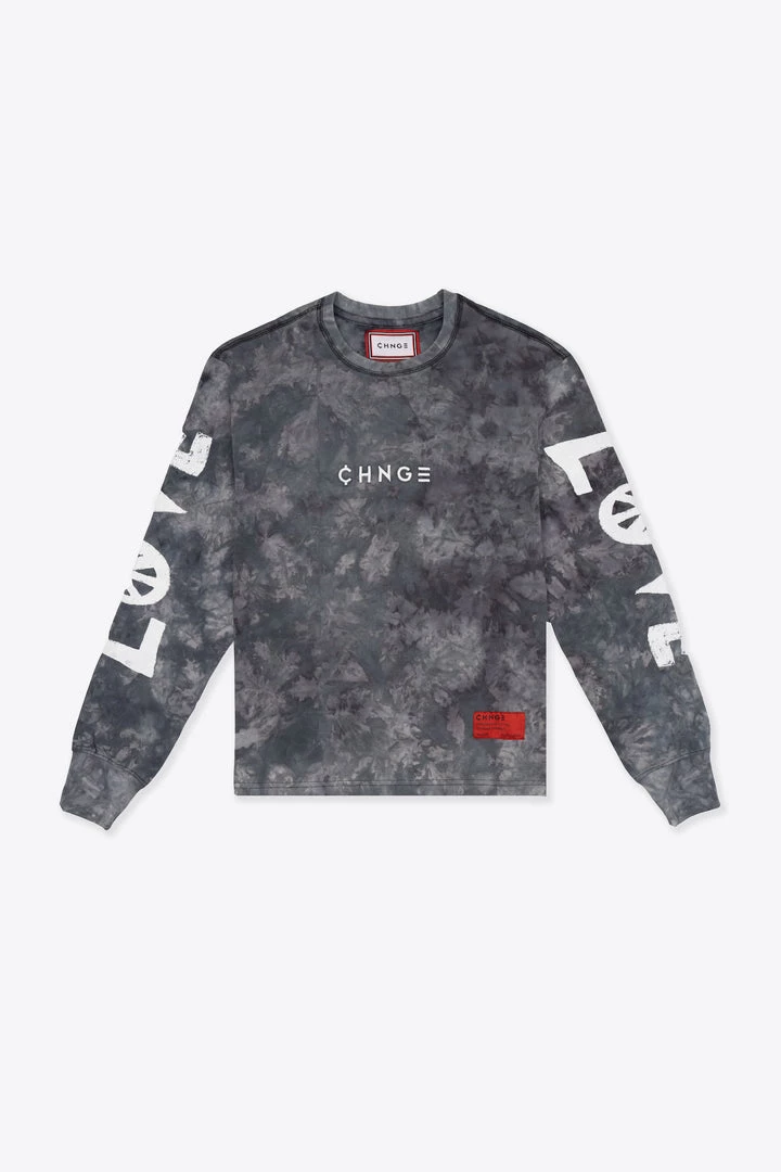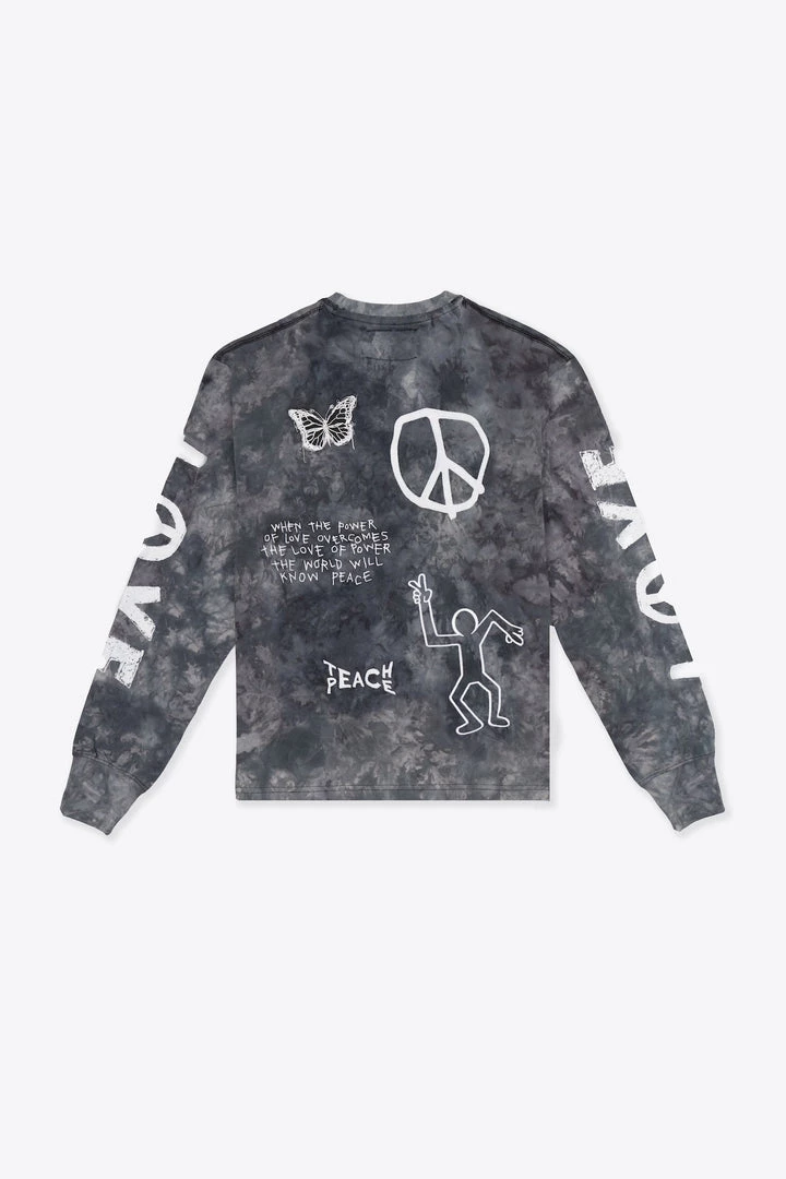 Sree Santhosh Tie Dye Love Peace Cuffed L/S T-Shirt (Chalk/Black)