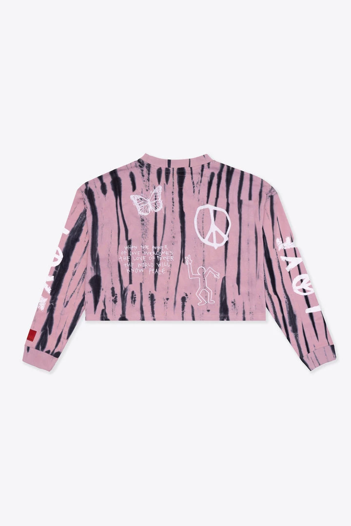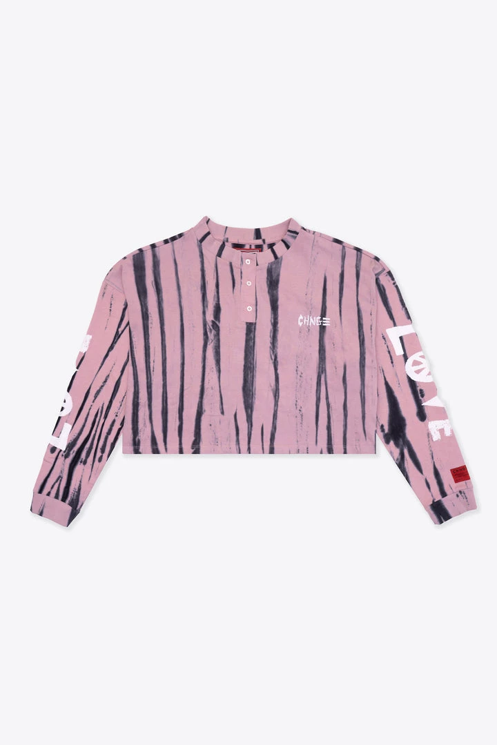 Sree Santhosh Tie Dye Love Peace L/S Cuffed Henley Crop (Mauve) Best Selling