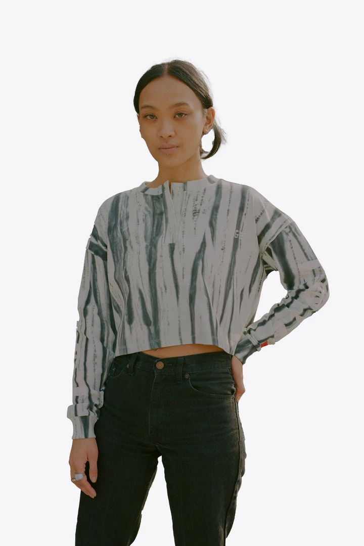 Sree Santhosh Tie Dye Love Peace L/S Cuffed Henley Crop (Mint)