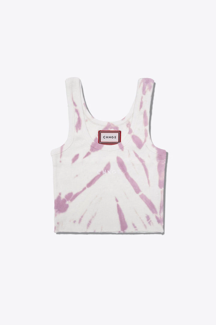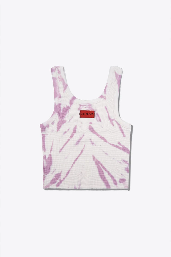 Sree Santhosh Tiger Stripe Tie Dye Logo Ribbed Tank (Mauve/Chalk) Best Selling