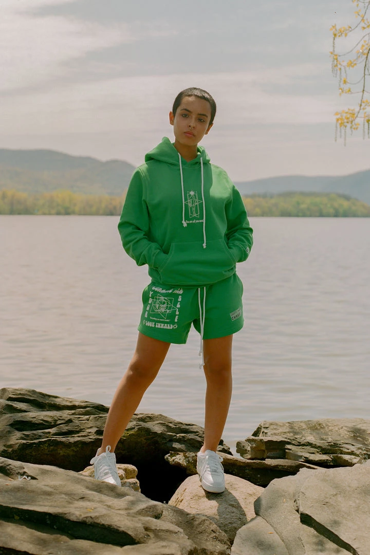 This garment is made from a 100%, GOTS certified, heavyweight, 14oz organic cotton fabric featuring a french terry finish.